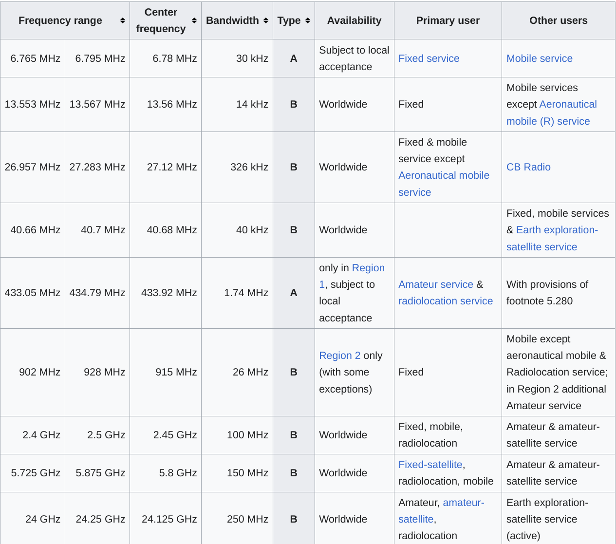 Short for industrial, scientific and medical, it’s no exaggeration to say that the ISM bands make the world go round. Here, you’ll find weather stations, pacemakers, tyre pressure monitoring systems, as well as a whole bunch of other interesting devices.